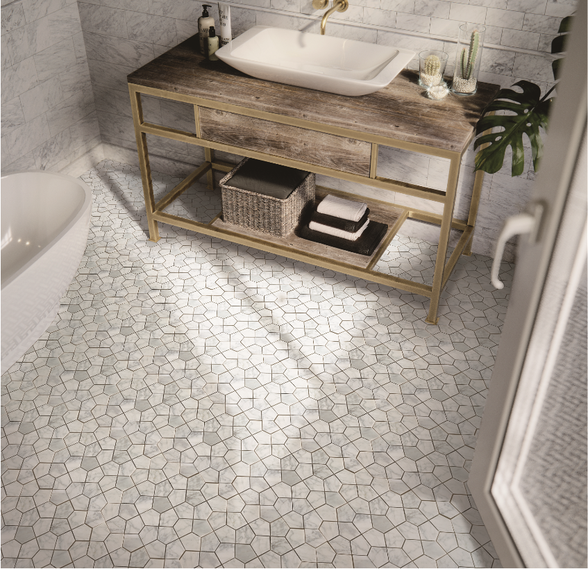 Stone Mosaic--Carrara Pentagon